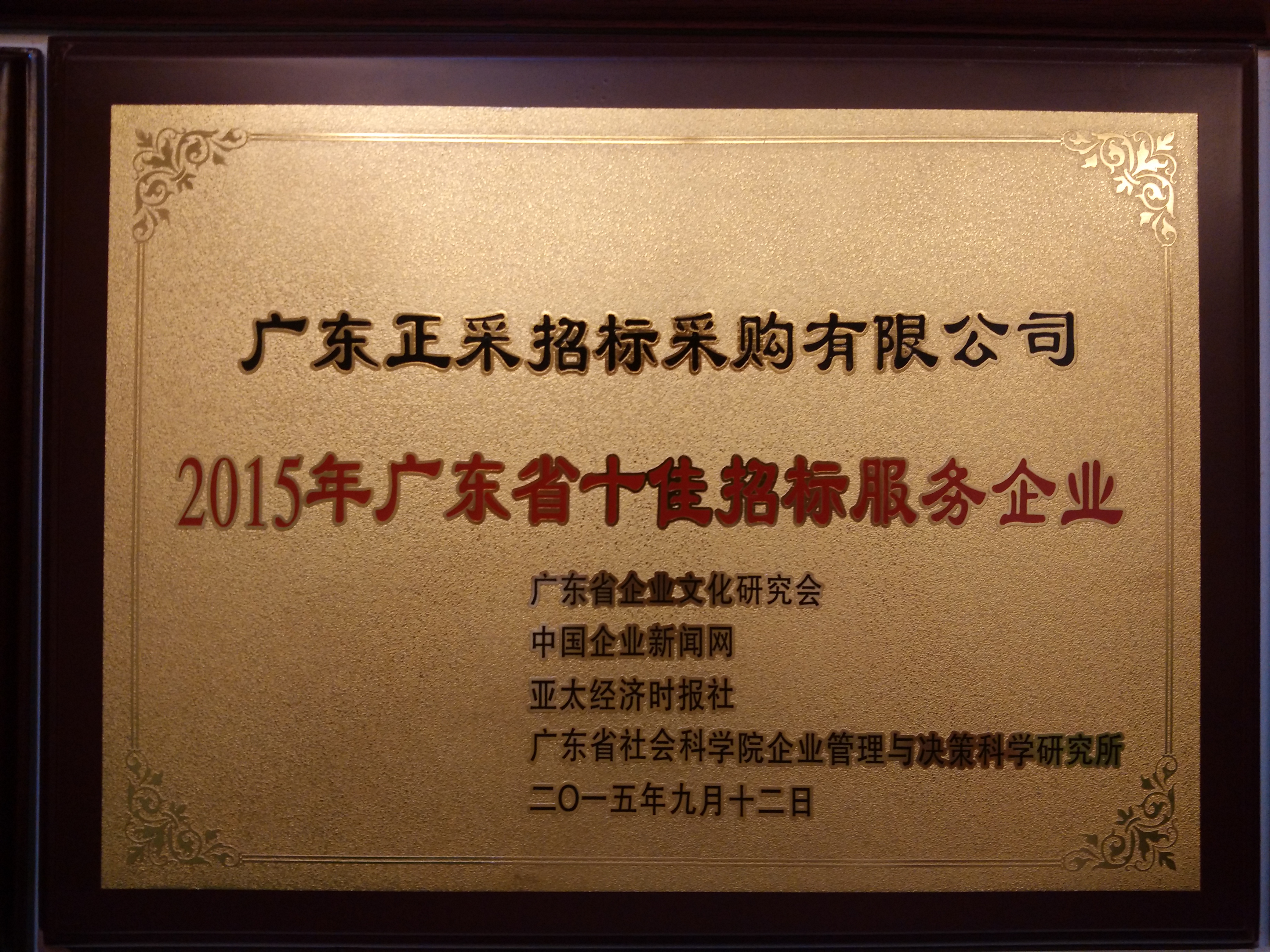 2015年廣東省十佳招標服務(wù)企業(yè)